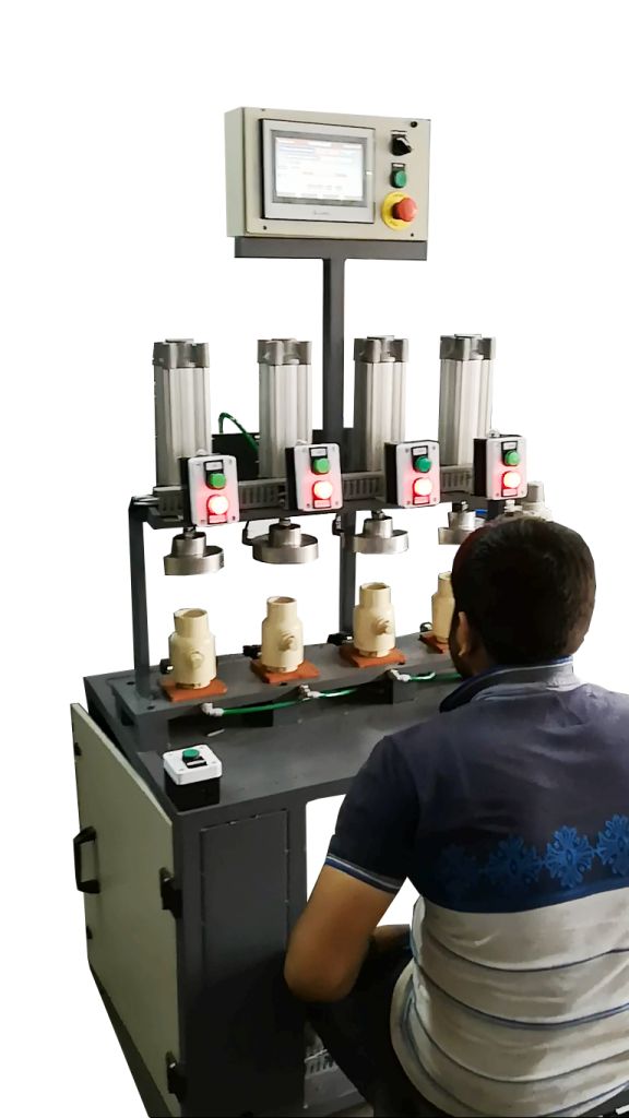 Automatic Hydro Pressure Testing Machine is the perfect labor-saving component to meet the demands of testing Plastic Irrigation Products, Water line products, Steel high pressure components. Single machine can Test wide range of Component from 1/2" to 4"size, Pressure 1 bar(Kg/cm2) to 100 bar (Kg/cm2).