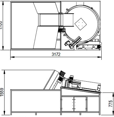 Storage depands on size of bottles. Bottles will supplied to turn table and pass