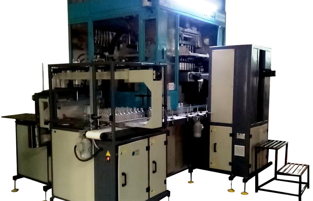 Automatic Bottle Take Out System for ASB 70DPH Machines is the perfect labor-saving component to meet the demands of high-speed ASB 1 Step Pet Bottle Injection stretch Blow Molding Machine and Packing Lines. Machine is Servo based robotic system designed to pick bottles from the ASB Ejecting nozzle and Place vertically on conveyor. No longer are employees required to manually PIck the bottles from shut and place the bottles one by one in the bag with proper arrangement – an otherwise tedious and time consuming task.